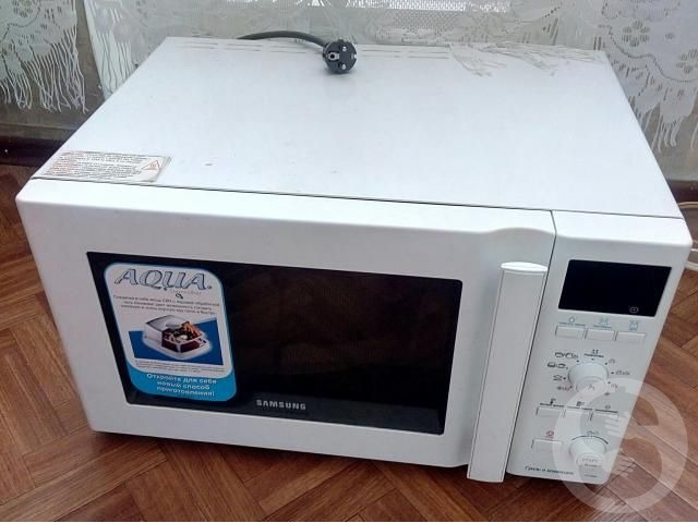 Мощная и функциональная микроволновая печь: есть конвекция (приготовление как в обычной духовке) и гриль, а также возможность приготовления на пару. Б/у, в хорошем состоянии (нужно заменить лампочку подсветки (200р.), на работу не влияет). В комплекте посуда для пароварки и решетки подставки для гриля. Инструкция по эксплуатации.