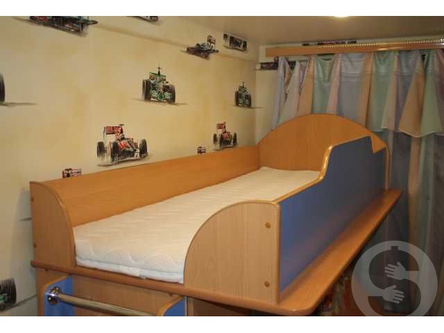 Продам кровать-чердак в Киеве ( с новым ортопедическм матрасом.) : Кровать хорошая, спальное место достаточно большое 1900 х 800 мм. (даже взрослому места достаточно), шкаф тоже понравился (внутри одно отделение с штангой, второе отделение с полками для белья, компьютерный стол с полками для книжек и тетрадей). Ребёнок не спит на ней, поэтому продаем. Ни наклеек, ни рисунков. Отличное состояние. Спальное место 1900 х 800 мм. Общие габариты 2100 х 1600 х 1900 мм. Дно кровати на высоте 1500 мм.